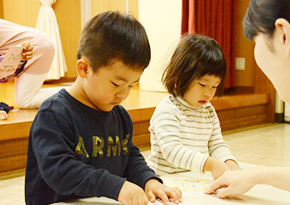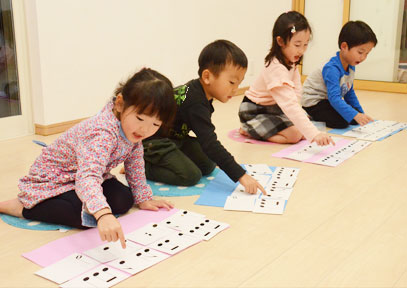 絵本を完成させ、ものがたりを創っていきましょう。いろいろな音を経験し、リズム遊びの刺激で感性を育み、脳の発育を促します。