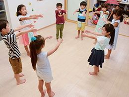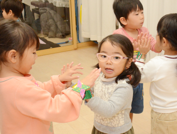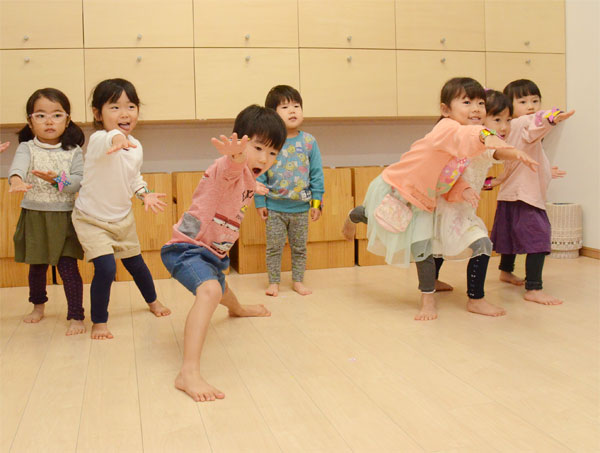 リトミックの活動は保護者から離れ、1人で、2人で、みんなでと、表現の方法もグレードアップしていきます。