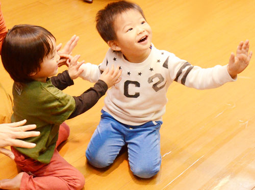 1歳児は物まねの天才、周りの人(人的環境)が何よりもお手本です。リズムが良くなることは吸収力が良くなること。お母さまといっしょに、心地よい音楽の中で反応しながら、じょじょに友だちとの触れあいを経験していきましょう。「良い音楽、愛情ある語りかけ」を是非味わってください。